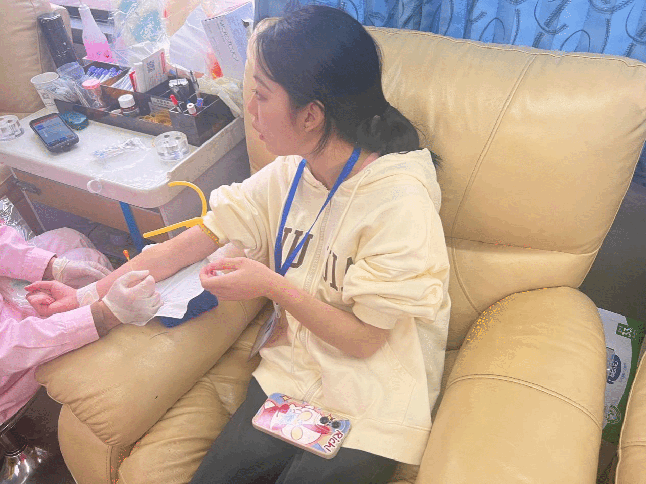 活动现场,在工作人员和志愿者们的指引下,同学们扫码预约、初筛取样、排队等待、上车献血.....师生们热情参与,志愿者认真负责,医务团队细致专业,各环节井然有序、有条不紊。