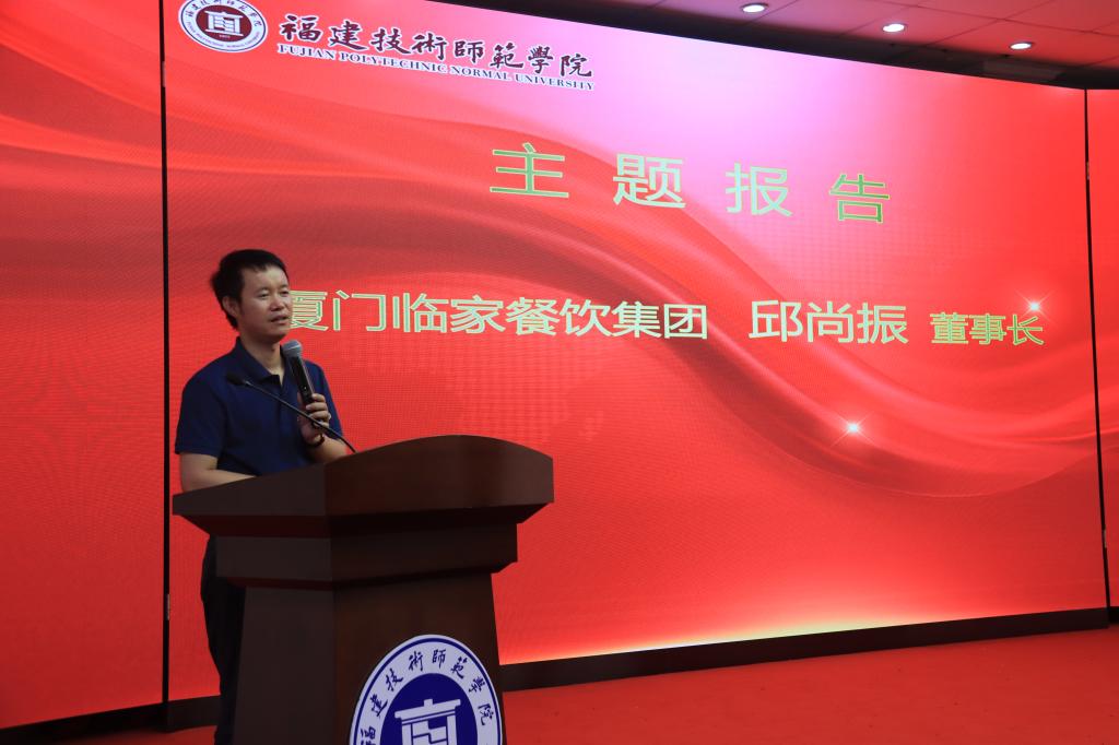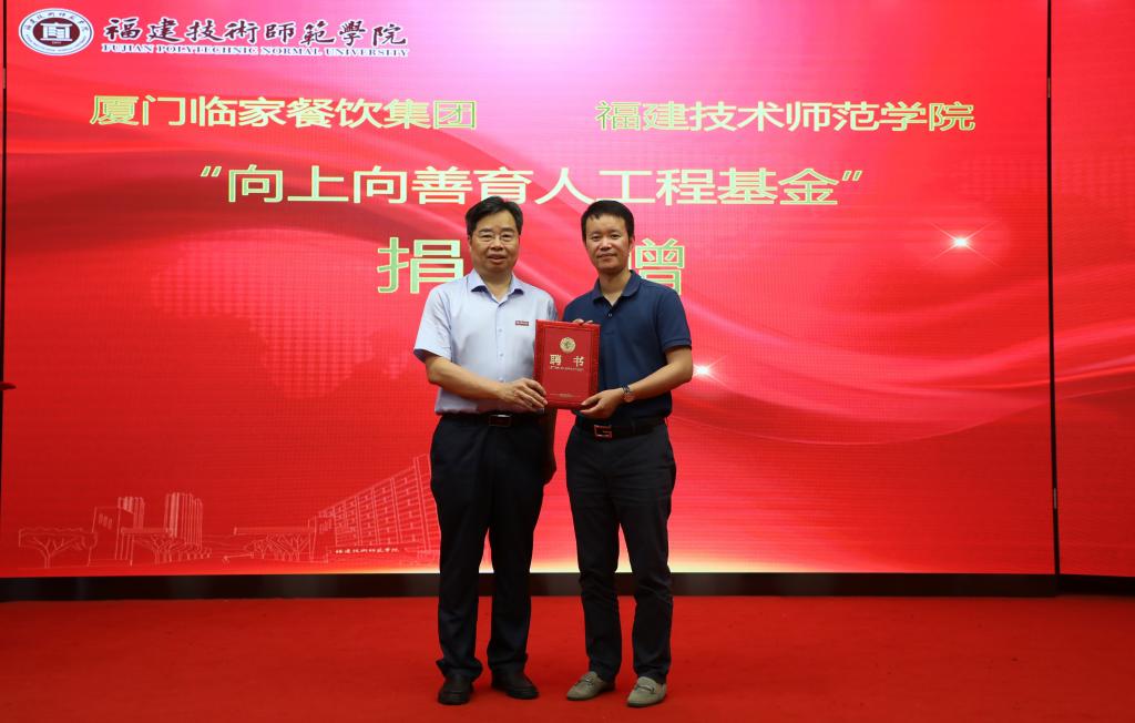 仪式上,校长廖深基教授代表学校接受厦门临家餐饮集团捐赠基金,并向邱尚振董事长颁发了我校客座教授聘书。