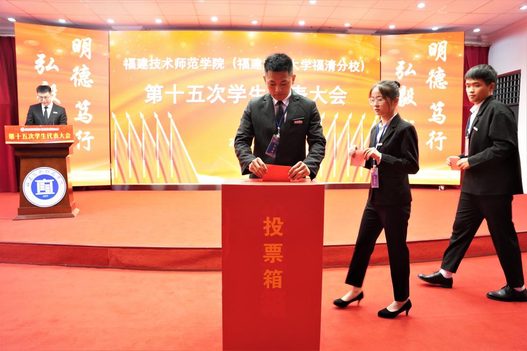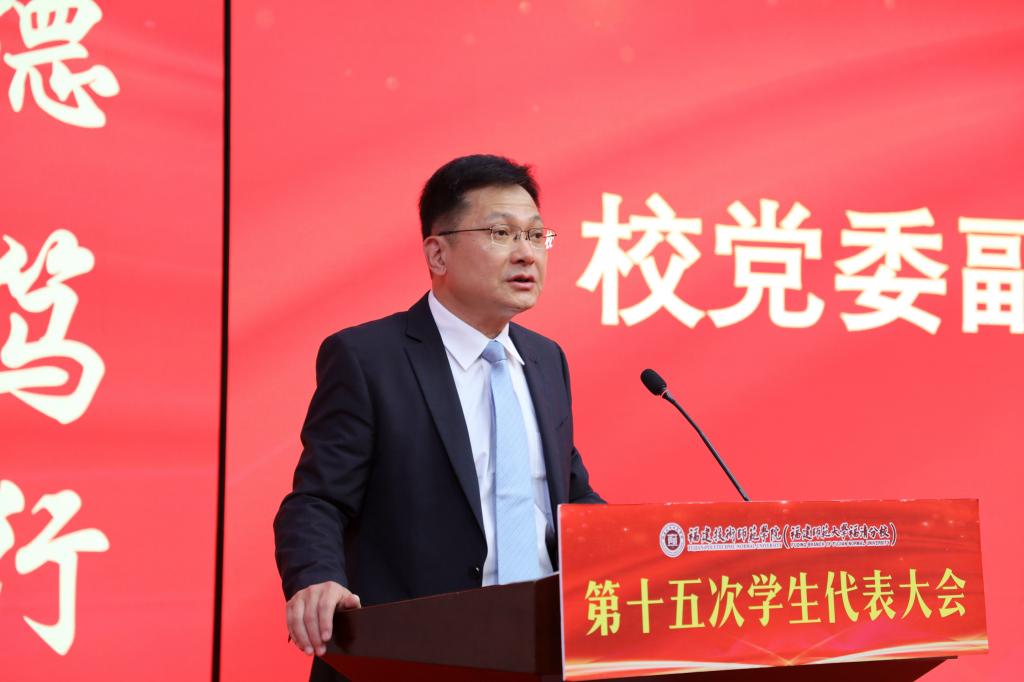 11月24日,我校在五马校区科学楼学术报告厅召开校第十五次学生代表大会。校党委副书记林海峰、福建省学联主席李雨潼、校学生工作部部长陈秀兵,校团委负责人吴蔚平、董林和校团委全体成员,各二级学院团委负责人及151名学生代表出席会议。会议由第十四届校学生会主席团成员卓悦民主持。