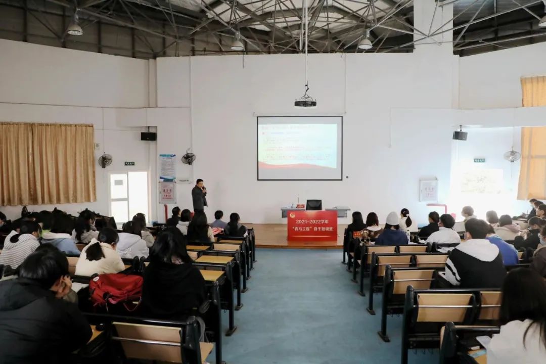 12月22日下午,校党委副书记林海峰为我校2021-2022学年“青马工程”骨干培训班学员上思想政治理论课。马克思主义学院负责人陈赵阳、校团委负责人吴蔚平、校团委相关老师、本期“青马工程”骨干培训班学员及部分学生代表共同参加了学习。