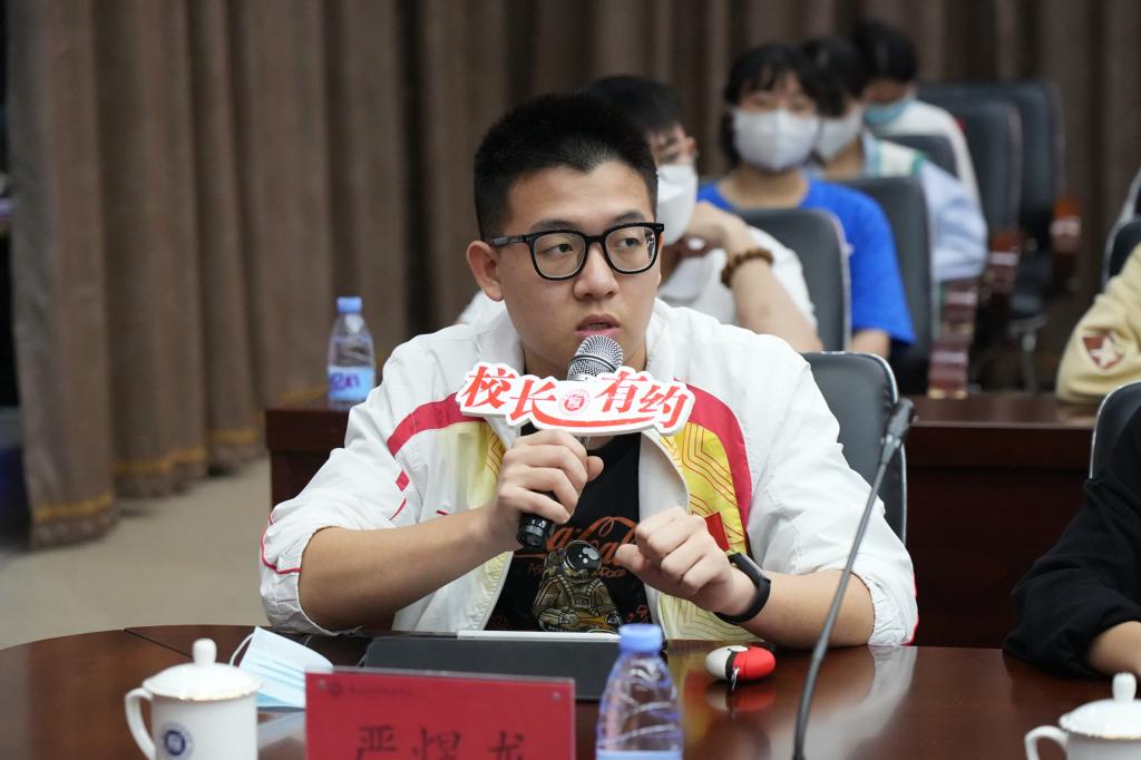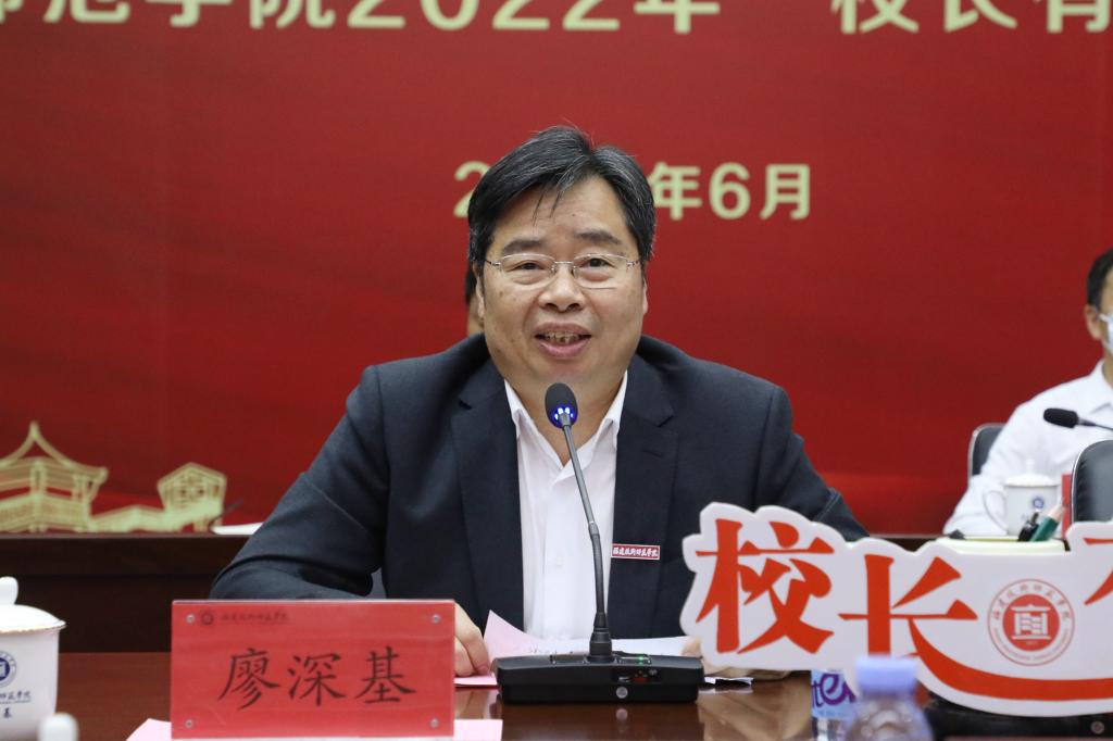 廖深基校长首先向同学们通报了学校近期发展情况,分析了新发展阶段学校发展面临的新形势、存在的主要问题,和今后的主要发展思路。他表示,学校自独立设置以来发展形势喜人、态势良好,综合实力快速提升,但仍然存在着“成长的烦恼”,与同学们对学校的期待还存在一定差距。他表示,师生所望就是学校工作所向。学校将坚持“以生为本、质量为要、学做合一、全面发展”的办学理念,认真倾听、切实解决同学们反映的困难问题,并以不断发展的实际成效回应、回报同学们对学校的信任和支持,为同学们健康成长创造更好的条件。他鼓励同学们畅所欲言,充分表达想法,锻炼自我素质,助力学校发展。