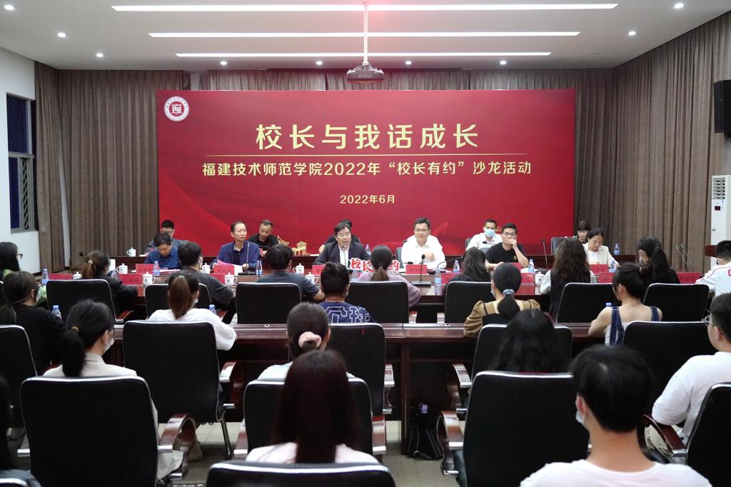 6月9日晚,我校在五马山校区图书馆学术报告厅举办2022年“校长有约”沙龙活动。校长廖深基与50多名青年大学生代表面对面座谈交流,听取同学们对学校的意见,了解同学们的学习生活情况。。座谈会由校党委副书记林海峰主持,党政办公室、学生工作部、教务处、后勤管理处、财务处、安全保卫处、资产处、图书馆、校团委主要负责人和体育学院负责人参加了活动。