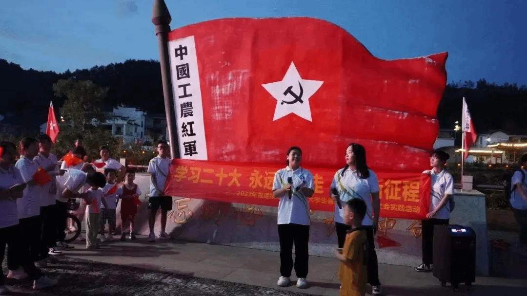 实践队员发挥学科专业特长,对大田乡的山水物产和古厝古建进行拍摄取材,着力创作具有青年视角、符合时代审美、展现地域特色的文创产品,并开展了实地调研,了解旅游对居民生活和村居环境带来的变化,以更好地宣传推广当地人文景观,助力地方乡村振兴。当晚,实践队员还在红军文化主题公园举办艺术党课,通过“艺术+党课”的形式,以红歌、红色诵读传递党的好声音,并与当地人民群众进行互动交流。