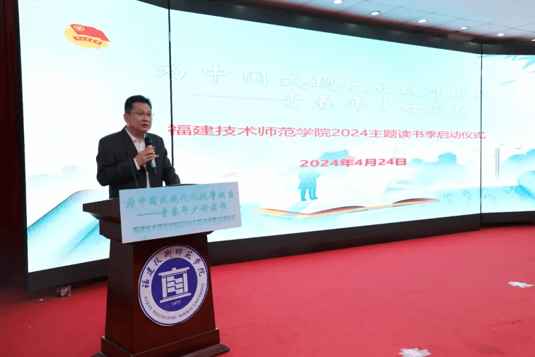 院党委副书记林海峰发表了热情洋溢的讲话,并宣布学校“为中国式现代化挺膺担当——青春年少好读书”2024年主题读书季活动正式启动。他深入阐述了习近平总书记的读书观,并结合自身学习感悟,寄语青年大学生爱读书、读好书、善读书,为中国式现代化挺膺担当,为实现中华民族伟大复兴的中国梦贡献青春力量。他指出,读书可以增长见识、开阔视野,激发热情、实现梦想,陶冶情操、提升品质,是我们每个人最好的选择。他希望学校各单位和各级团学组织担起为党育人责任,引导新时代大学生深学细悟党的创新理论,以坚定的信念和饱满的热情投入主题读书季活动,不断推进书香校园建设,持续深化全民阅读,积极营造爱读书、读好书、善读书的院风教风学风,共同书写属于我们这代新人的辉煌篇章。