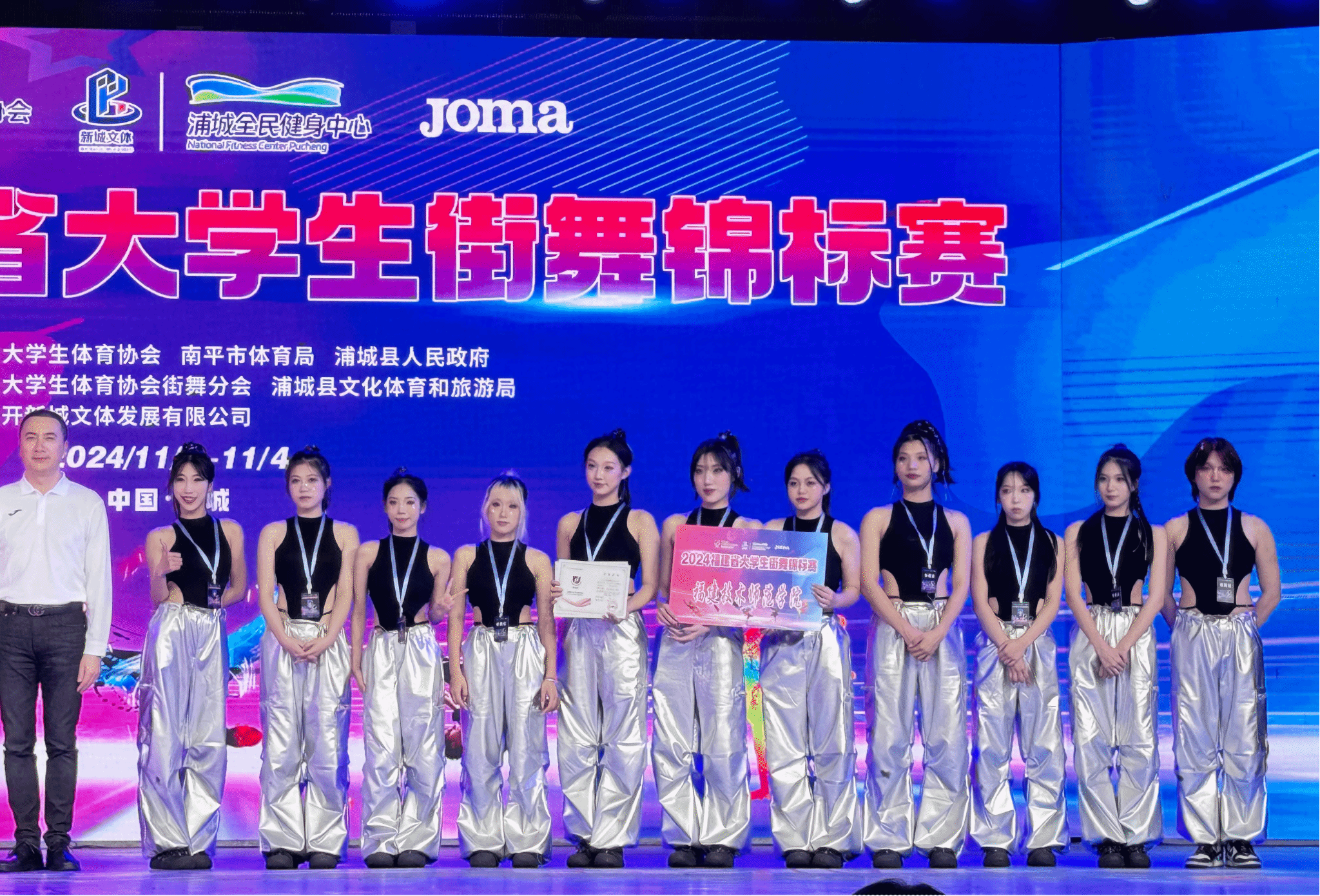 11月1日至11月3日,由福建省大学生体育协会、南平市体育局、浦城县人民政府主办的2024年福建省大学生街舞锦标赛在南平市浦城县举行。我校街舞协会代表学校出赛,并获得第一名2项、第二名1项的佳绩。学校获评优秀组织单位。