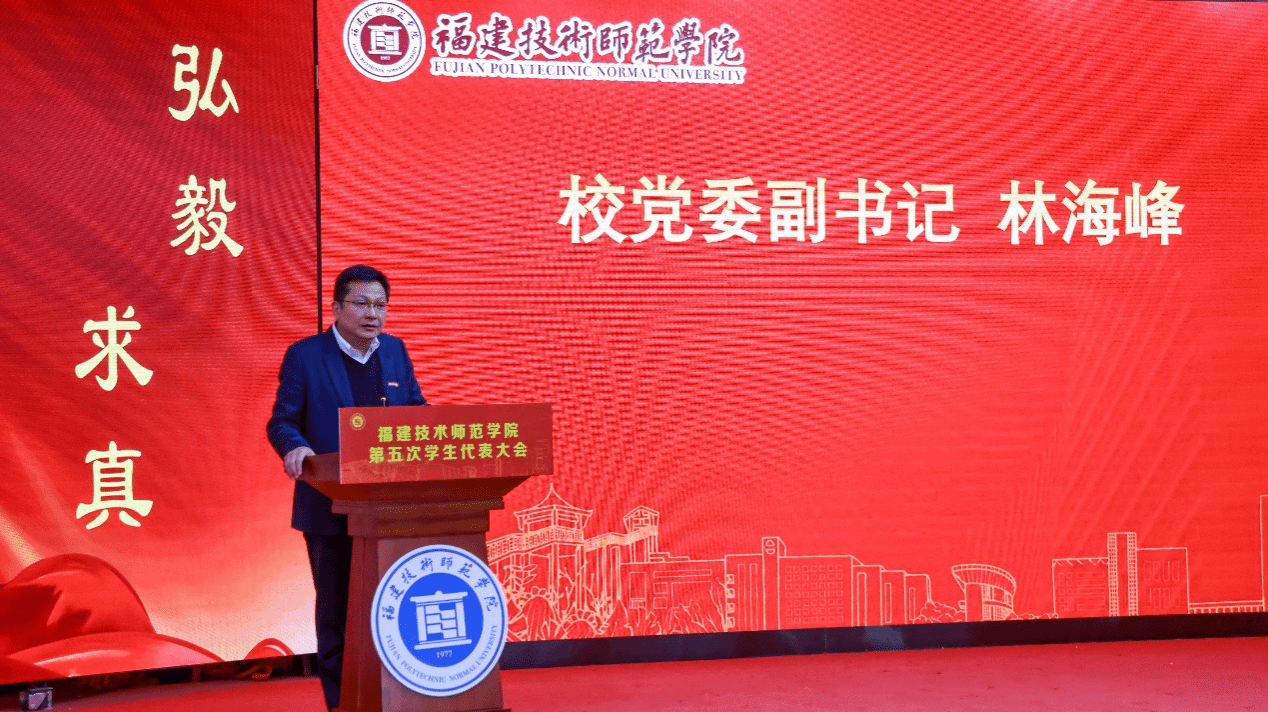11月28日,校第五次学生代表大会在五马山校区金泰学术报告厅顺利召开。校党委副书记林海峰、福建省学生联合会驻会执行主席林一贤出席会议并讲话,学生工作部副部长王耕、校团委副书记(主持工作)吴蔚平,各二级学院团委负责人和学生代表等200余人出席本次会议。