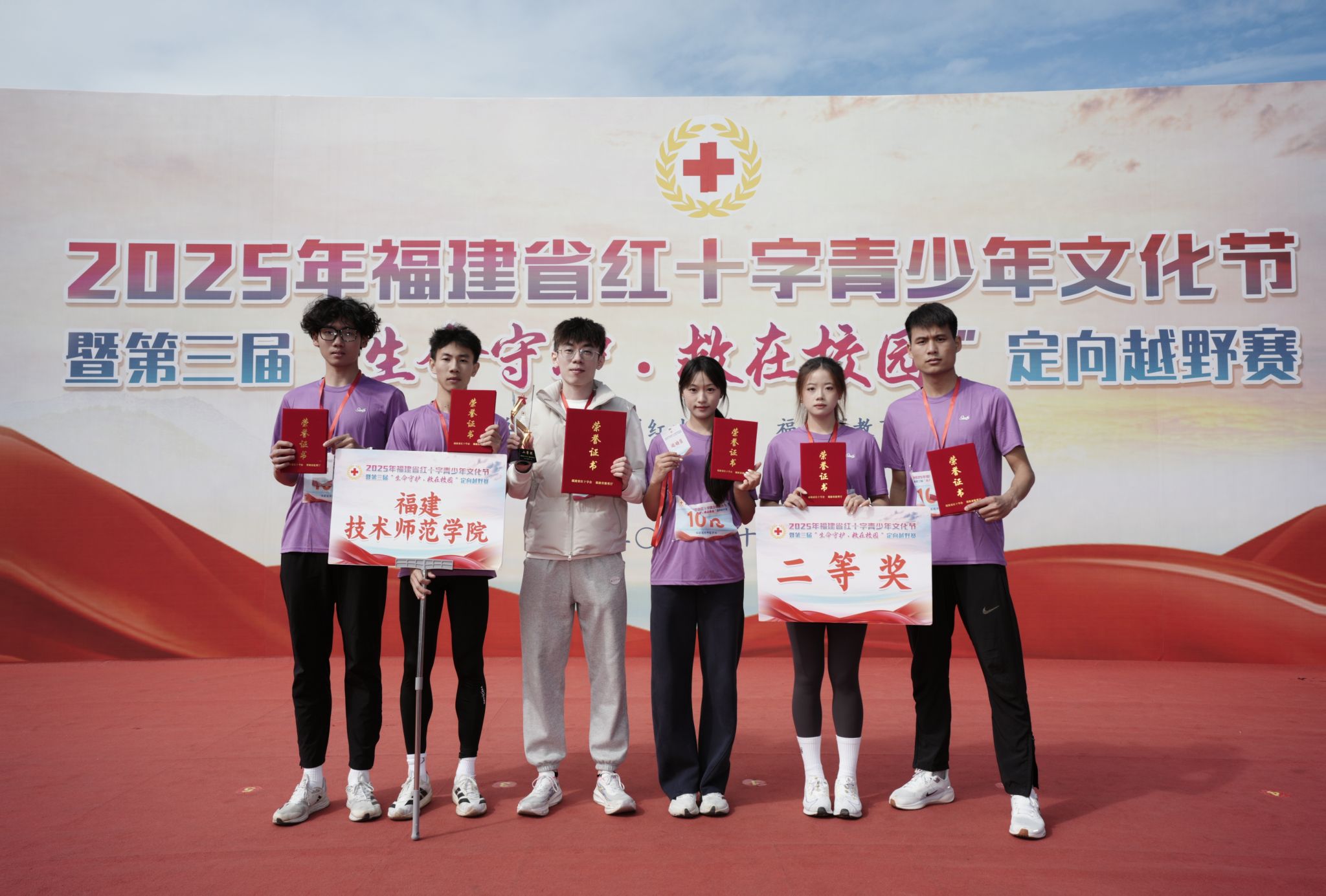 11月30日,福建省红十字青少年文化节暨第三届“生命守护·救在校园”定向越野赛在龙岩技师学院举办。由校团委选派、体育学院欧林老师指导的我校5名红十字会学生,在比赛中团结协作、沉着应战,最终荣获二等奖。