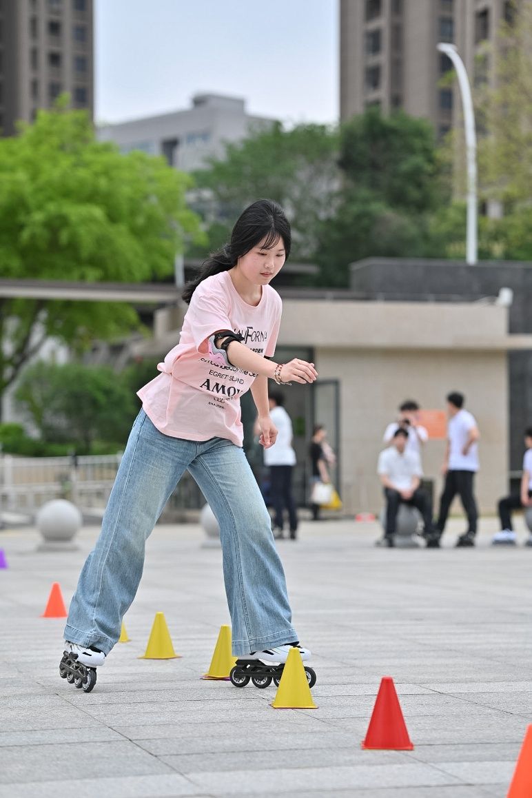 4月22日下午,由酷溜轮滑协会主办、视觉与摄影协会协办的2026年“轮舞青春·滑出精彩”趣味轮滑挑战赛,在五马山校区北区鼎新广场活力开赛。