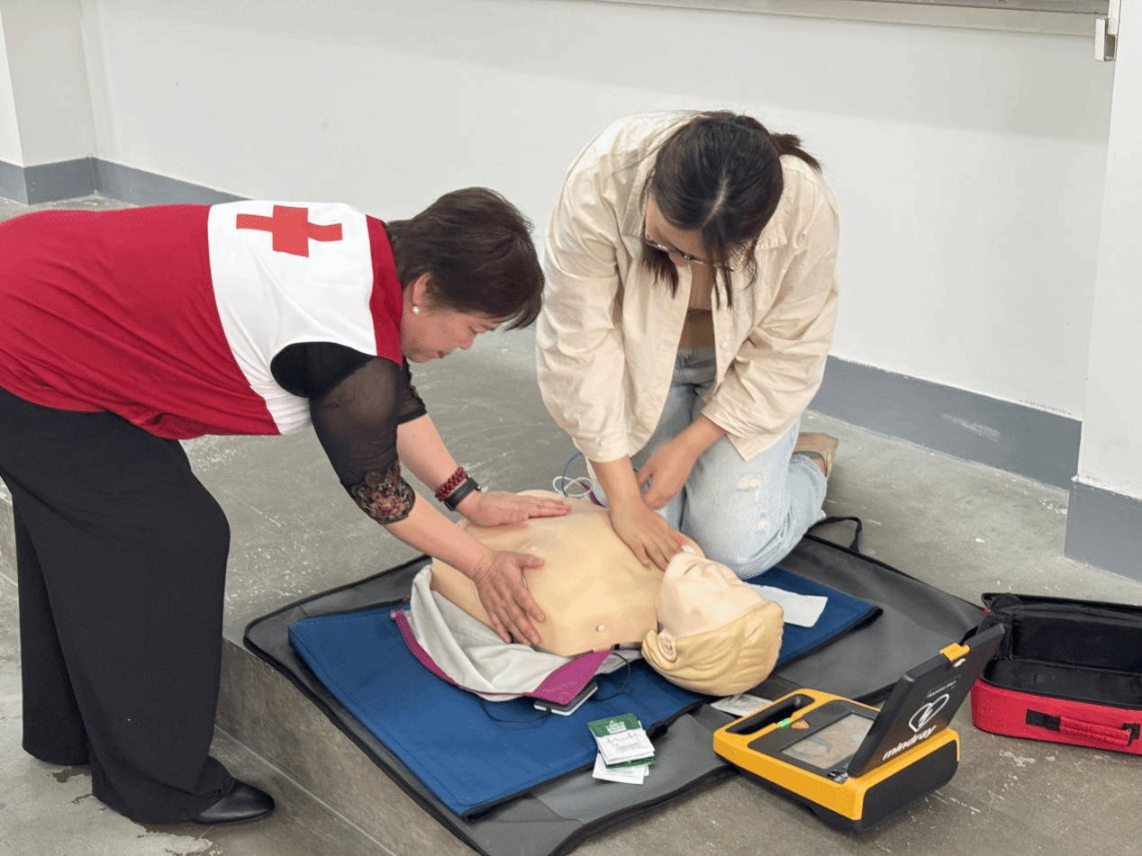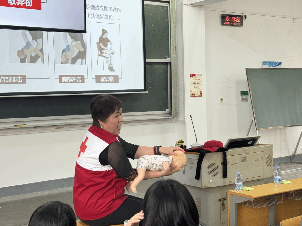 讲座中,授课老师们围绕心肺复苏的操作流程与按压标准、创伤包扎的手法与适用场景等核心急救技能进行了详细讲解,并结合婴儿气道异物梗阻等常见突发场景,利用专业模拟教具进行现场演示。同时,针对学员在实操中提出的疑问,老师逐一解答并纠正动作,确保大家能够科学、规范地掌握急救技能。